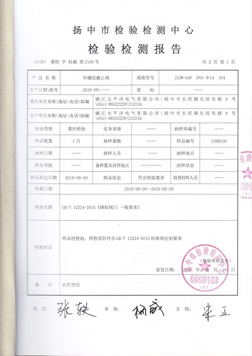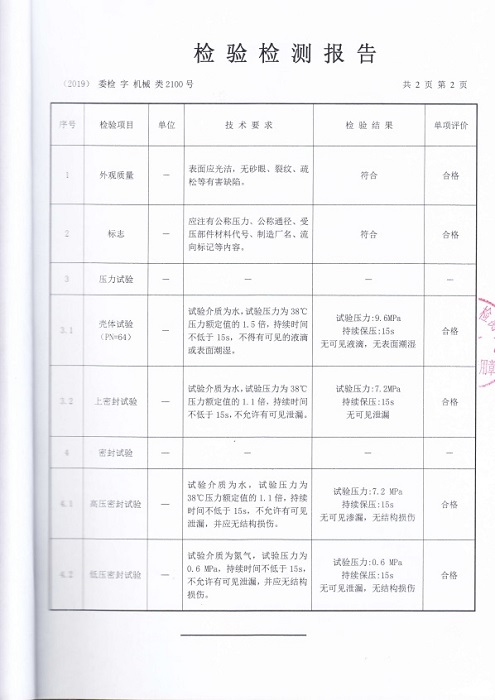 仪表管阀件产品检测报告